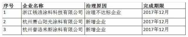 浙江杭州大江东产业集聚区3家涂料企业VOCs整治名单